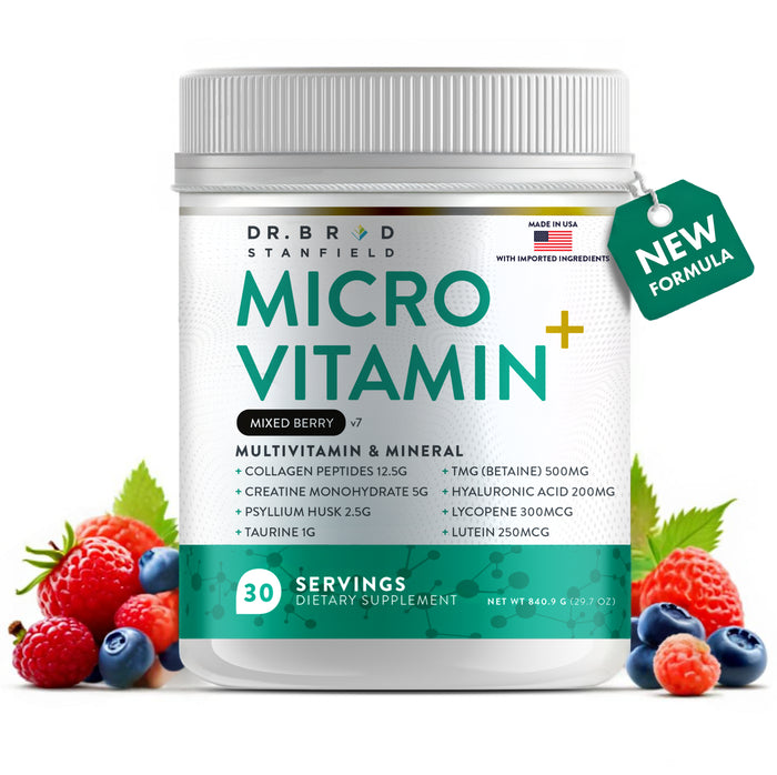 MicroVitamin+ is designed to complement a healthy diet, not replace it. Dr Brad emphasizes that obtaining nutrients from a variety of whole foods is crucial for optimal health. MicroVitamin+ aims to fill the gaps and support your nutritional needs when your diet falls short, ensuring you maintain a well-rounded and balanced approach to your health.