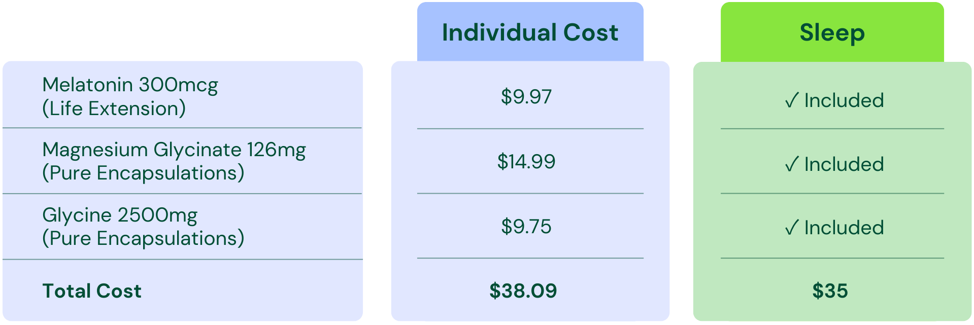 Purchasing these ingredients separately would cost you $38.09 per month, but MicroVitamin brings them all together for only $35 per month on a 3-month subscription.